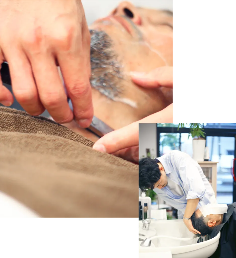 床屋さんならではの本格的なシェービングで、髭・眉もすっきり整います。